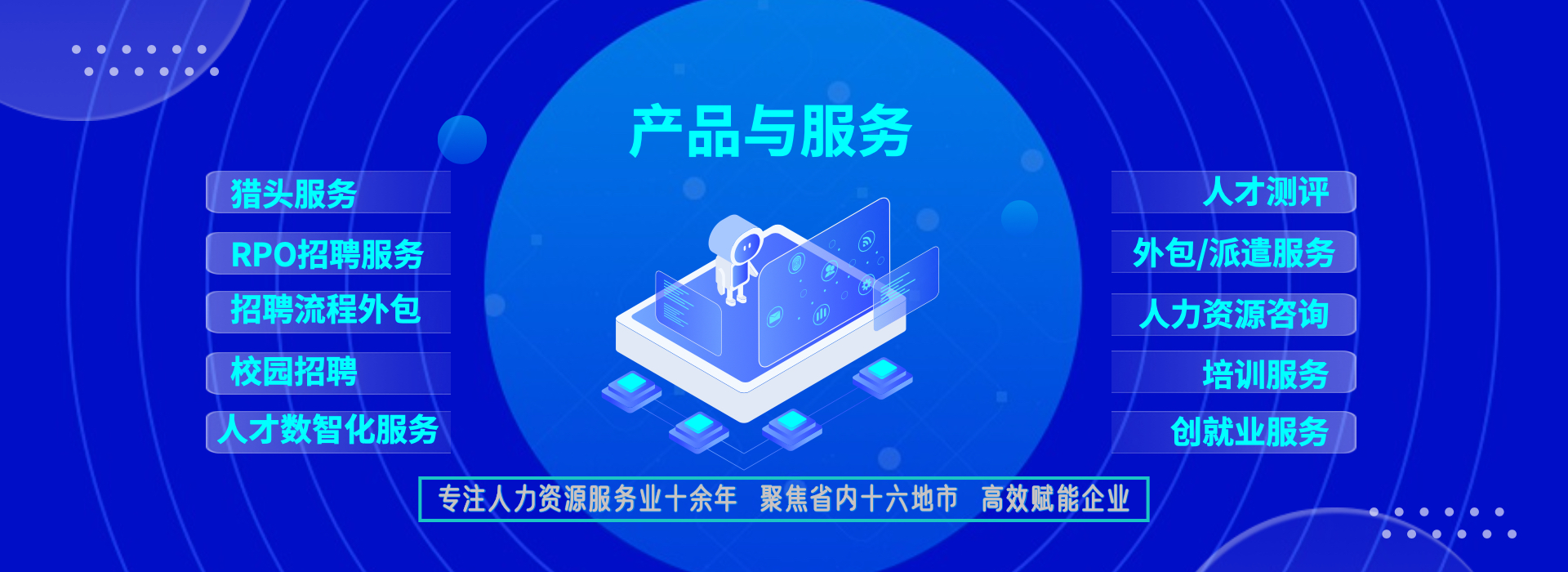 一站式服務(wù),降低企業(yè)管理成本 事務(wù)外包:人事事務(wù)外包,實(shí)習(xí)生招聘與管理外包 崗位外包:IT技術(shù)、財(cái)務(wù)/會(huì)計(jì)、行政文秘類和市場(chǎng)類崗位 項(xiàng)目外包:校園招聘外包、招聘流程外包、社交媒體運(yùn)維外包、設(shè)計(jì)創(chuàng)意外包 業(yè)務(wù)流程外包:物業(yè)管理項(xiàng)目外包、零售快消行業(yè)的營銷服 務(wù)外包、倉儲(chǔ)物流業(yè)的倉儲(chǔ)與配送外包、O2O地推營銷外包、 呼叫中心外包等